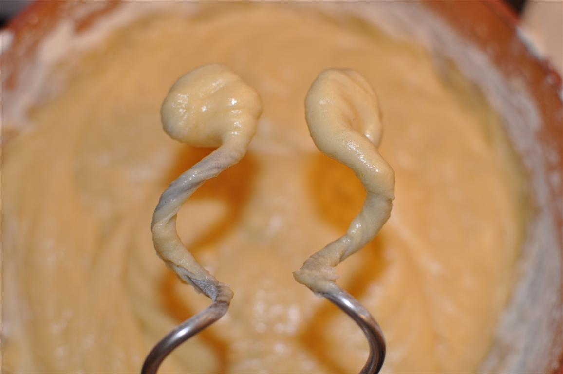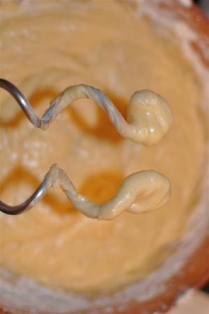 Sviestu ar mikseri puto, kādu pusminūti, pamazām ber klāt cukuru, vanilīnu, sāli un puto līdz izveidojusies vienmērīga masa. Ik pa pusminūtei pievieno pa olai, puto.