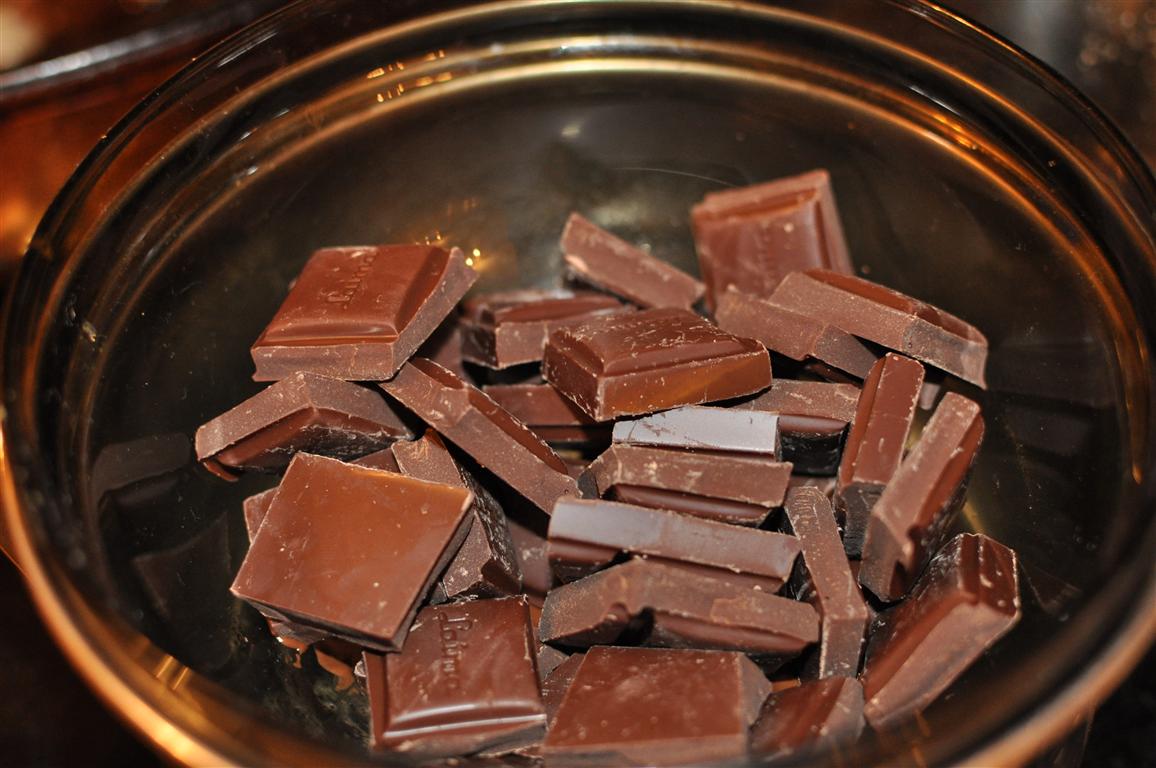 Ūdens peldē izkausējam šokolādi. Kausējot jāievēro, lai ūdens katliņā nebūtu pārāk karsts, citādi šokolāde sadegs un nebūs tik šķidra.