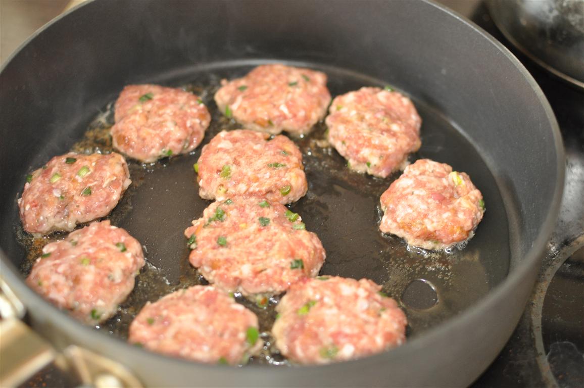 Ļaujam pusstundu atpūsties vēsumā. Veidojam nelielas kotletītes. Lai masa neliptu pie rokām tās var ik pa brīdim samērcēt aukstā ūdenī.
