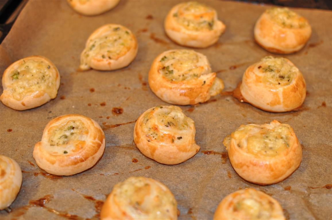 Mazas, gardas maizītes ar siera un garšaugu pildījumu. Tika apēstas tik ātri, ka es pat nepaspēju nofotografēt. Bet vēl gardākas, kad ir vēsas, ja izdodas neapēst, kas tiešām ir grūts uzdevums. Ja paši negatavojat kārtaino mīklu, tad pagatavojamas patiesi ātri.
