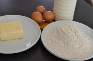 Sijātos miltos iesitam olas, pievienojam cukuru, sāli. Siltā pienā izkausējam raugu. (Pienam jābūt tik siltam lai tajā brīvi varētu turēt mazo pirkstiņu, bet nesajustu aukstumu.)