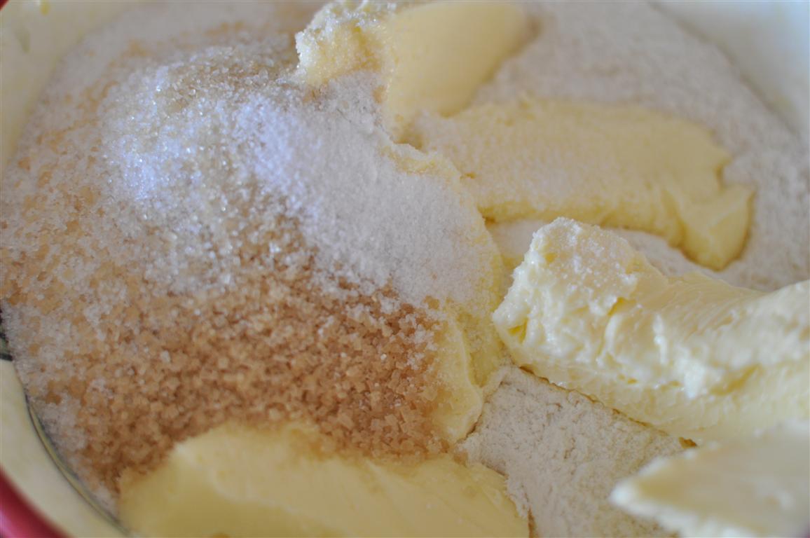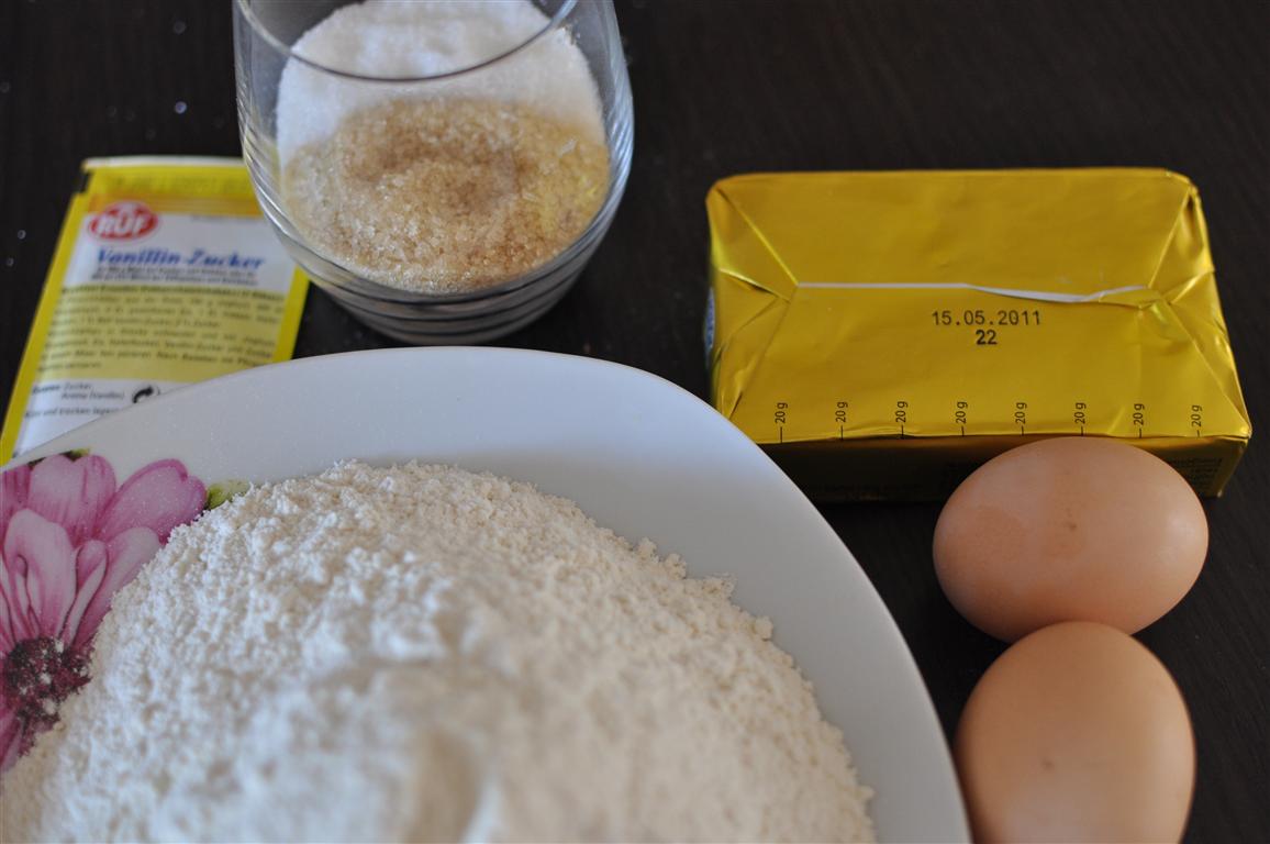Vispirms veidojam smilšu mīklu. Miltus ieber bļodā, vidū liek sakapātu sviestu un cukuru, sāli. Visu sadrupina, tad iesit olas un mīklu mīca.
