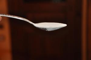 2. 5 strīķētas ēdamkarotes miltu (skatīt attēlos)