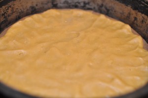 Tad ņemam kūkas formi, kura izklāta ar cepamo papīru. Ņemam vienu no mīklas bumbiņām un ar pacietību, grozot formi lēnām līdzinam. Ja neuzticieties savām spējām un roku veiklībai, tad liekat lietā mīklas rulli, nu kaut vai pudeli. Ja jums ir lielāka forma, nekā tie 23cm arī nav liela bēda, atstājat brīvas maliņas.
