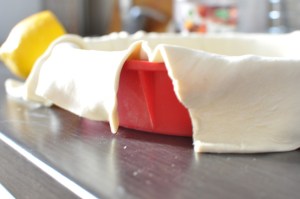 Vispirms atsaldējam mīklu, nedaudz izrullējam un klājam veidnē. Es izmantoju 25cm cepamo veidni no silikona, taču varat izvēlēties jebkādu.
