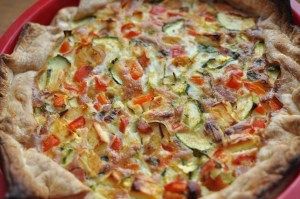 Lai gan ārā ir auksta ziema, gribējās palutināt sevi un savus mīļos ar ko sātīgu, vasarīgu un sildošu. Tādēļ pagatvoju dārzeņu pīrāgu. Turklāt tam iespējamas visdažādākās variācijas, atkarībā no Jūsu garšas kārpiņām vai ledusskapī atrodamajiem produktiem. Piemēram, šo pīrāga pildījumu iespējams pagatavot tikai dārzeņiem, gan pievienot žāvētu cūkgaļas šķiņķi vai vistas gaļu. Rudenī noteikti ieteiktu pamēģināt pielikt arī nedaudz pašu lasītu sēnīšu. Turklāt pīrāgā labi iederas gan baklažāni, gan rīvēts burkāns. Pīrāgs ēdams gan karts, gan auksts kopā ar viegliem lapu salātiem.1. 1paciņa saldētas kārtainās bezrauga mīklas (nedaudz paliks pāri)