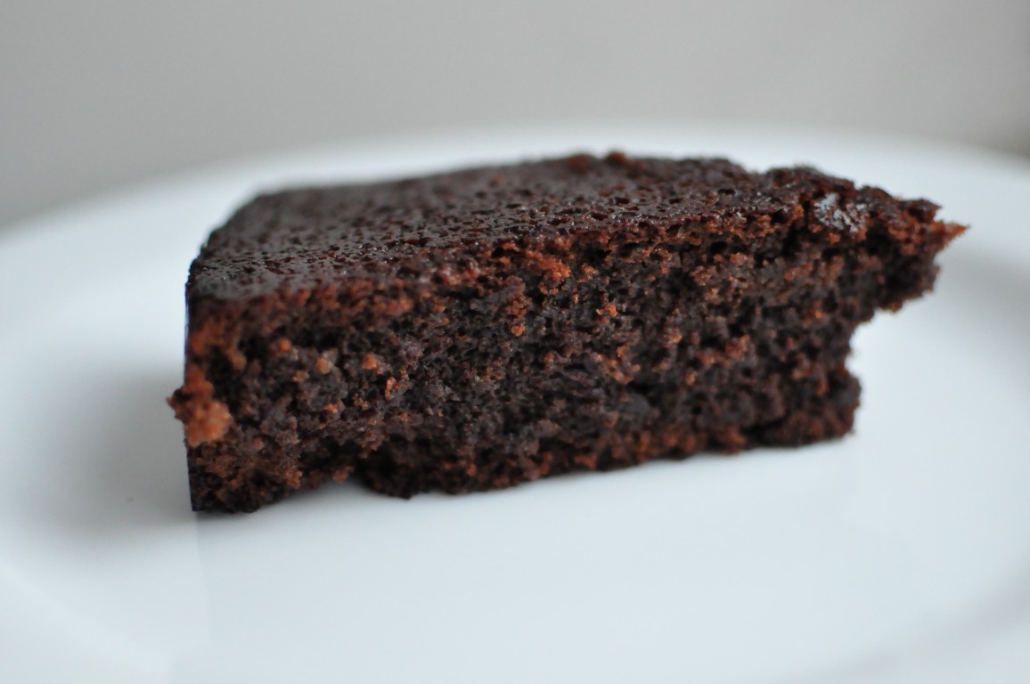 Pievienojam izkusušo šokolādes/sviesta/kafijas masu miltiem un visu rūpīgi samaisām. Kūkas mīkla nu ir gatava liešanai formā. Šim mīklas daudzumam ir piemērota 25 cm liela cepamā forma, kūka būs vidēji 4-5 centimetrus bieza.