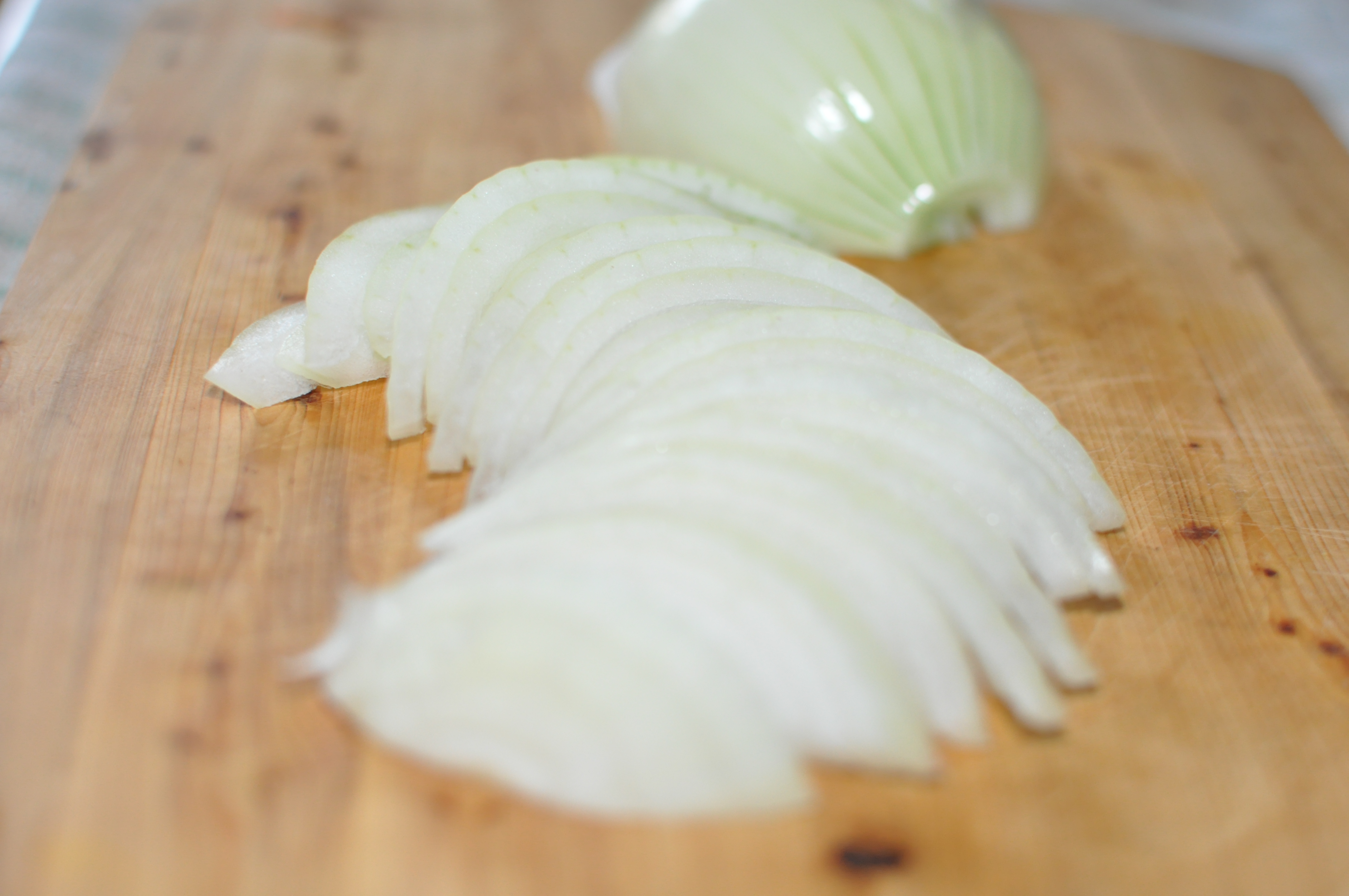 Sīpolus pārgriež uz pusēm, tad šķēlītēs. Sacep pannā zeltaini grūnus, liek traukā, kur tiks cepts cepetis.