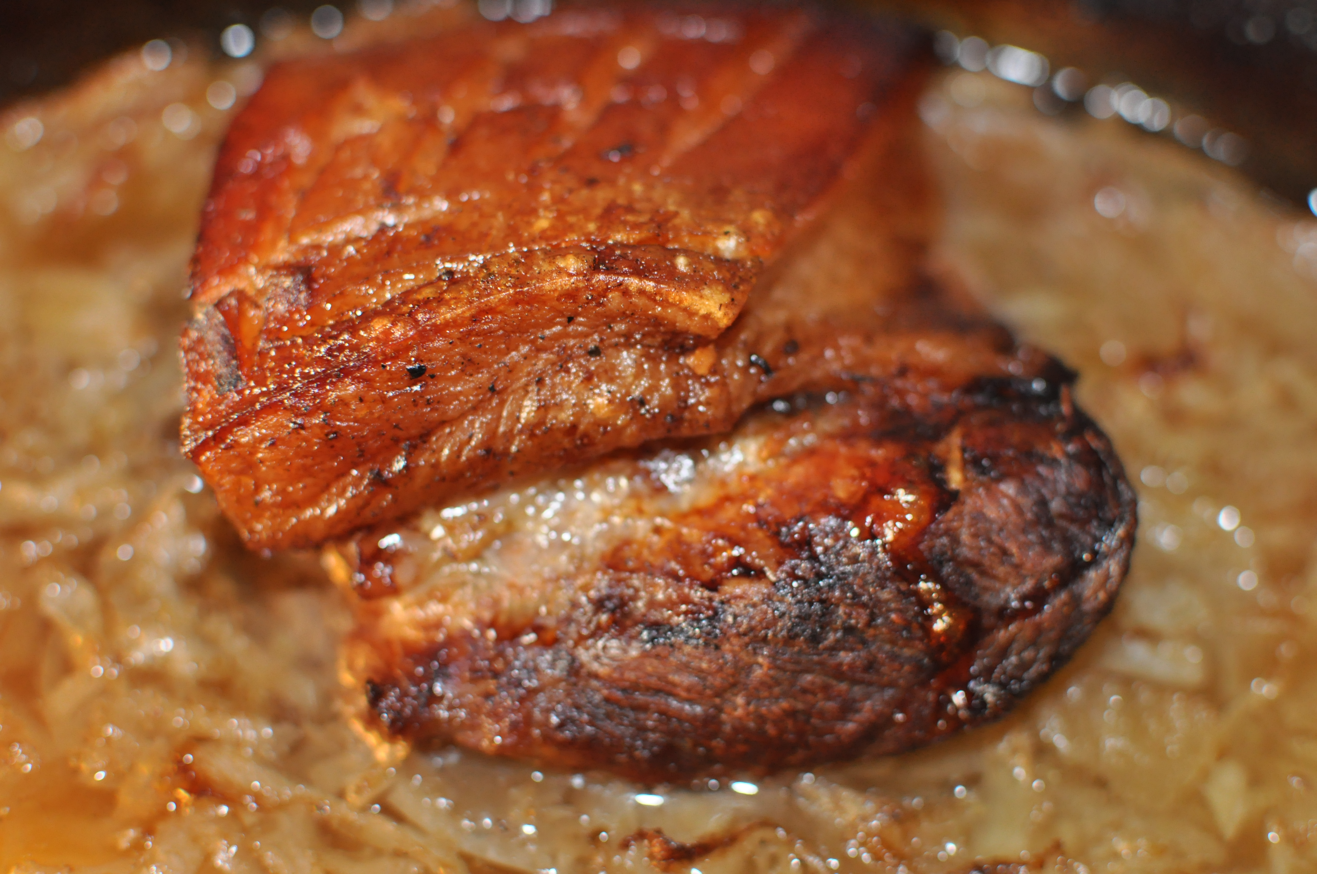 Šis cūkgaļas cepetis tiek gatavots kopā ar kāpostu un ābolu piedevu, kas sniedz gaļai maigu garšu, turklāt tā ir pasniedzama salātu vietā.Nepieciešams: