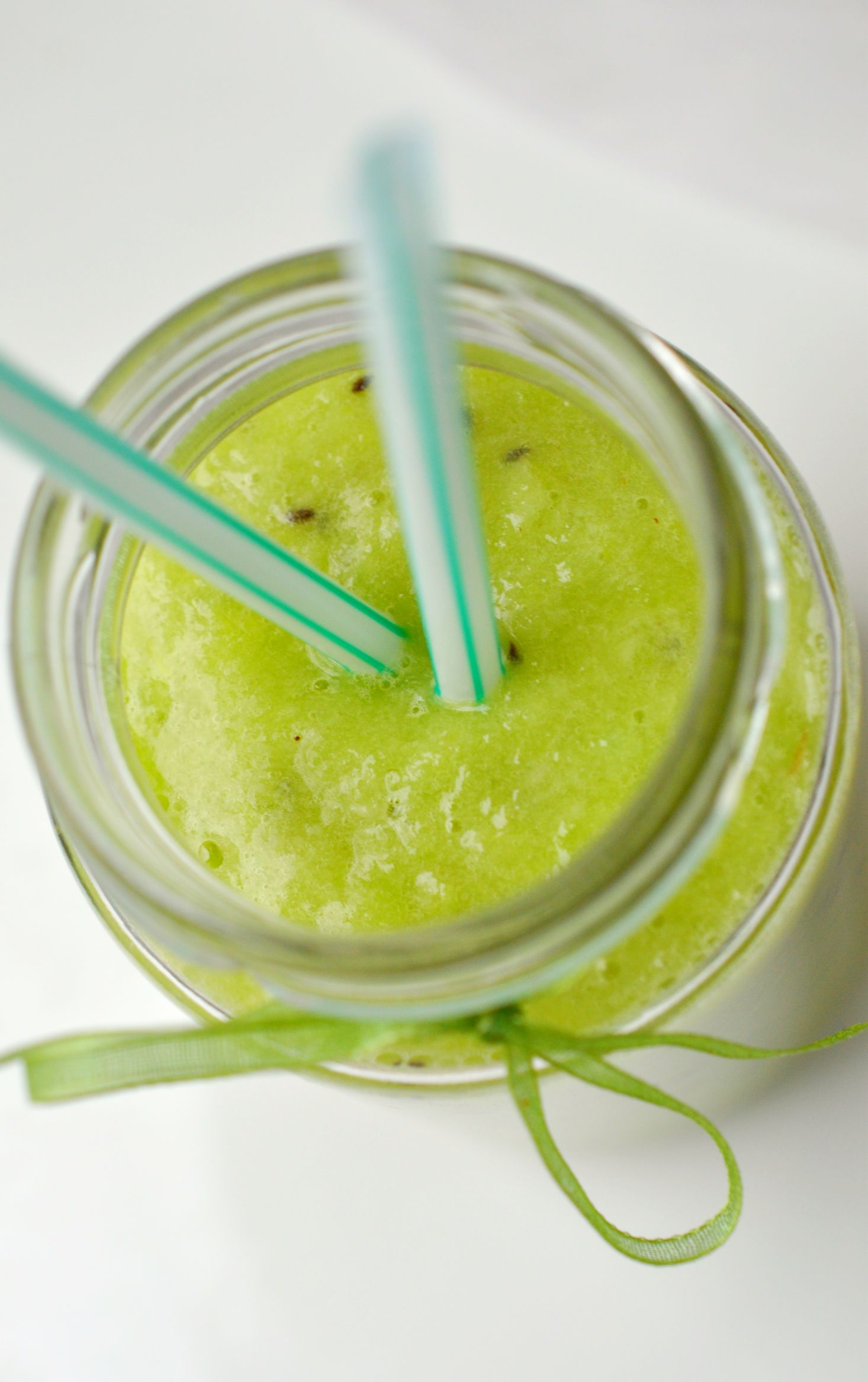 Augļus nomizojam, sagriežam lielos gabalos un liekam mikserī. Ja vēlaties, varat pievienot pavisam nedaudz ūdens vai ledus gabaliņus. Jo saldāki kivi, jo arī koktēlis būs saldāks. Iesākumā baidijos, ka garšas būs pārāk intensīvas un skābas, bet nekā, smūtijs ir maigs un atspirdzinošs. Īsta vitamīnu bumba!Zaļš smūtijsLai labi garšo!