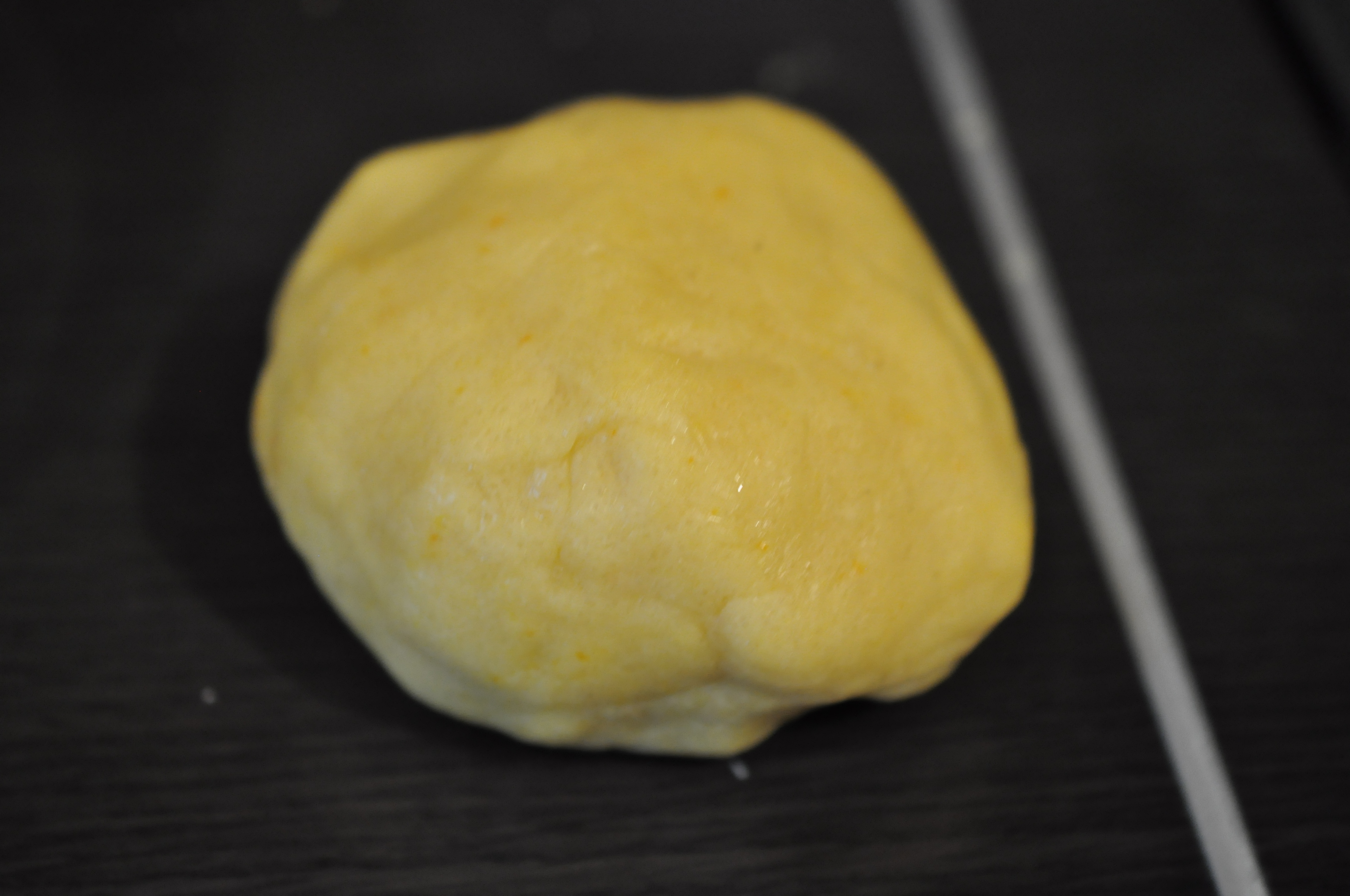 Tad veidojam pašu kūku. Uz miltiem nokaisītas pamatnes izrullējam mīklu un liekam kūkas formā (iesaku to iepriekš ieziest ar plānu sviesta kārtiņu).