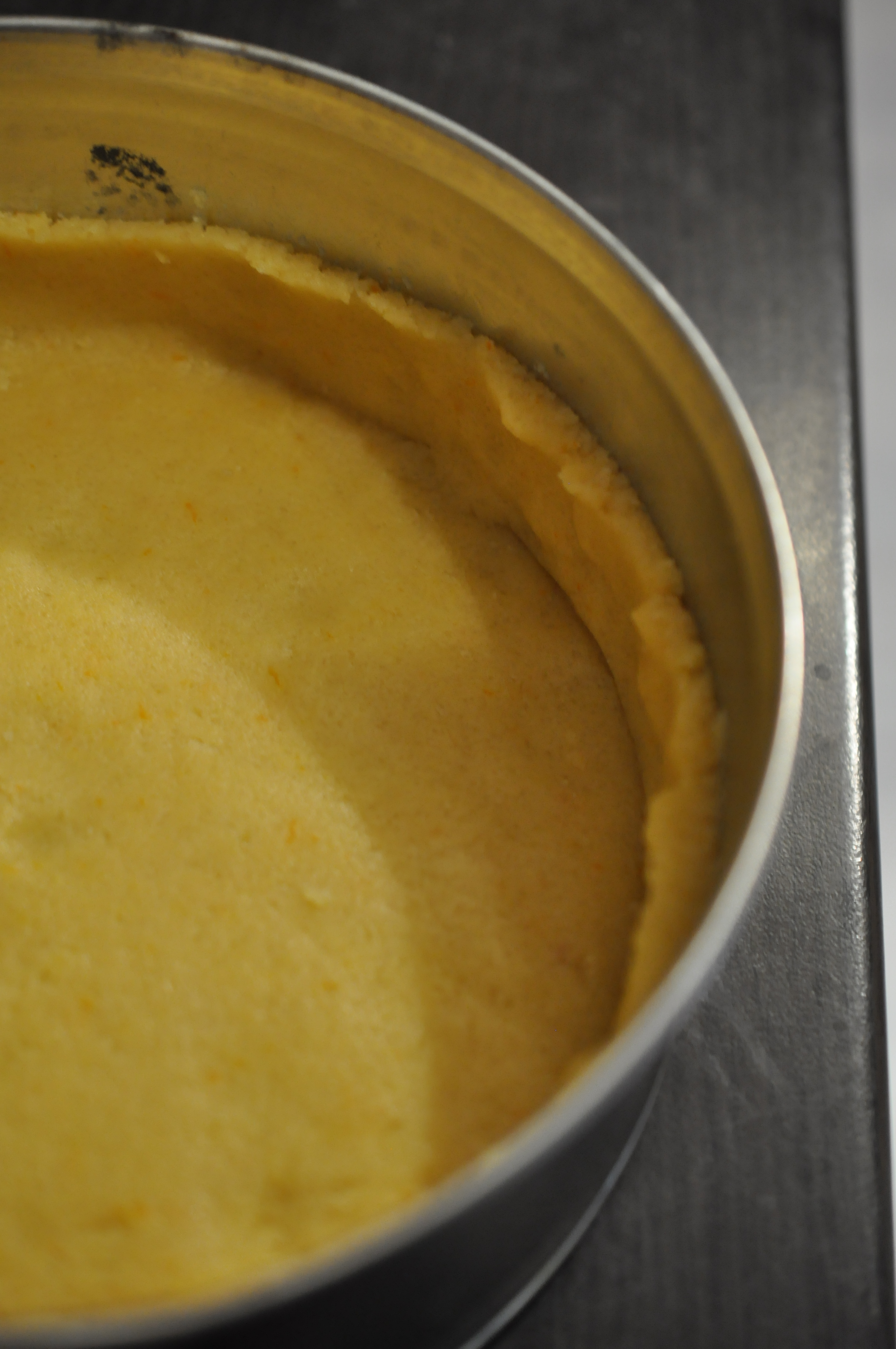Vietas, kur tik glīti neizdodas iecelt mīklu, to var pielabot ar pirkstiem. Tad šī mīklas garoziņa ir jācep. Lai tā nezaudētu savu formu iesaku tajā ievietot cepamo papīru un zirņus jeb keramikas pupiņas. Cep 10 minūtes 190 grādos. Tad izņem cepamo papīru un cep vēl 5 minūtes. Tā kūkas maliņai vajadzētu saglabāt savu formu. Tad varam liet mandeļu pildījumu.