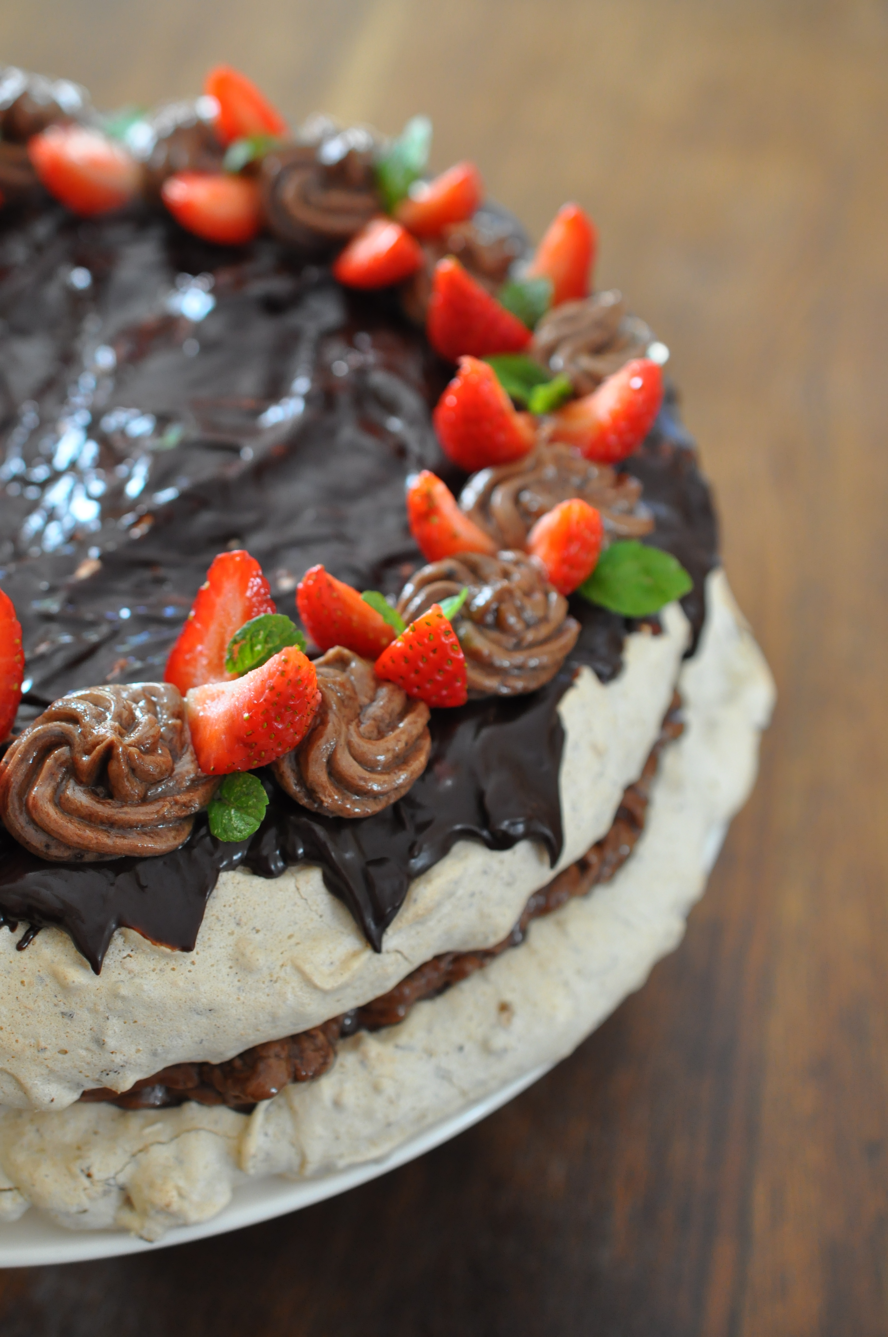 torte cielaviņaLiekam torti kopā. Uzmanīgi ceļam bezē, virsū klājam pusi no šokolādes krēma. Tad liekam otru bezē kārtu, kuru pārklājam ar šokolādes glazūru. No šokolādes krēma izspiež nelielas rozītes. Es kūku dekorēju ar svaigām ogām. Katru reizi tā sanāk nedaudz savādāka.