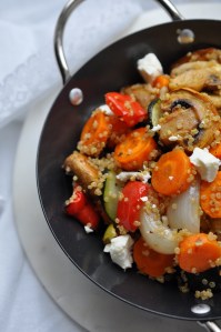 Krāsnī cepti dārzeņi ar kvinoju un fetas sieru
